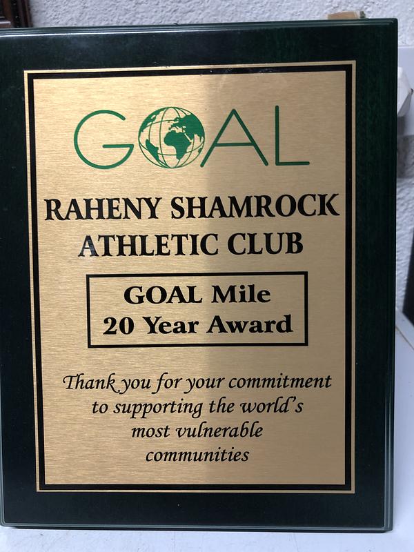 At a recent reception in GOAL’s headquarters in Dun Laoghaire, Raheny Shamrock’s long relationship with the 3rd World Charity was marked with a special plaque honouring the Club’s great contribution over the last 20 years.
